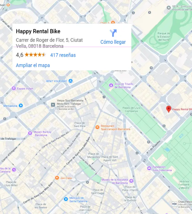 EXCELLENT Based on 394 reviews Posted on lilia25 April 2025Trustindex verifies that the original source of the review is Google. Très bon servicePosted on Cécile Carapeto20 April 2025Trustindex verifies that the original source of the review is Google. Très bien pour faire une balade dans Barcelone. Le propriétaire parle français, nous a donné les indications nécessaires.Posted on Vittorio Principe20 April 2025Trustindex verifies that the original source of the review is Google. Oggi abbiamo noleggiato 1 tandem e 2 bici per una pedalata in famiglia al parc de la ciutadela e sul lungomare. Il ragazzo è stato molto gentile e professionale, bici in ottimo stato. Si trovano bici per tutti le età, sia elettriche che standard. Consigliatissimo.Posted on Dominic5 April 2025Trustindex verifies that the original source of the review is Google. Oliver was super helpful and got our bikes in top condition for our tour around Spain.Posted on Olga OE13 December 2024Trustindex verifies that the original source of the review is Google. El trato ha sido muy bueno. El tándem que alquilamos estaba perfecto. Acabamos muy contentos con la experiencia y con el lugar. Seguro que repetiremos!!Posted on Militsa Georgieva9 December 2024Trustindex verifies that the original source of the review is Google. One of the best things that you can do in Barcelona is having a bike tour. This is one of the most bike friendly cities. Happy bike rental are great ♥️ They have bikes with child seat in front and in the back. There are even comfortable bikes for short people.Posted on Boyan Dochev8 December 2024Trustindex verifies that the original source of the review is Google. Day is always perfect on a bike! Perfect service for renting well-maintained bike with child seat. Perfect English, explanations and recommendations! Totally recommend!